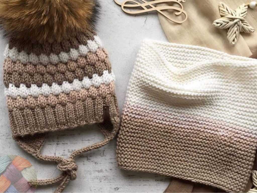 Шапочка с узором “зубчатые полосы” и снуд платочной вязкой