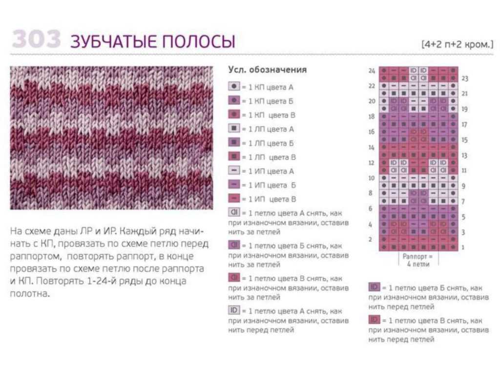 Основные узоры: — платочная вязка (при вязании по кругу чередовать 1р. лицевые, 2р. изнаночные; по прямой — все петли лицевые); — косы вяжите по схеме Как делать прибавления? Сделайте накид, а в следующем р. провяжите его лиц.п.за заднюю стенку, тогда не будет дырочки.