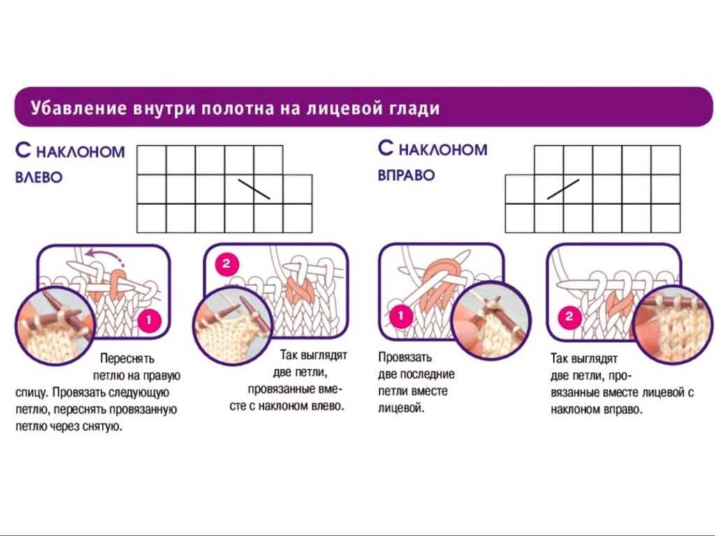 1-й ряд после резинки: *2 лиц, 2 пет. не провязывая (рабочая нить за работой)*, повтор до конца р.2-й р: как 1-й.3-й: весь ряд – лицевыми.4-й, 5-й, 6-й – *2 лиц., 2 изн.* – повтор до конца р. Поменяйте пряжу.7-й: *2 пет. снять (нить за работой), 2 лиц.* – повторить до конца р.8-й: как 7-й9-й – лицевыми10-й, 11-й, 12-й – *2 изн, 2 лиц* – повтор до конца р.Узор повторить с 1-го по 12-й ряд еще 2 раза, потом повтор еще раз с 1-го по 6-й ряд.Убавки.1-й р: *2 лиц, 2 ВМ изн.* – повтор до конца р.2-й р: *2 лиц, 1 изн* – повтор до конца р.3-й: *2 ВМ лиц., 1 изн* – повтор до конца р.4-й: *1 лиц, 1 изн* – до конца р.5-й: *2 ВМ лиц* – весь р.6-й – лицевыми7-й: *2 ВМ лиц.* – весь р.8-й: – весь р. лицевыми, стянуть остатки пет. Спрятать хвостик нитки.
