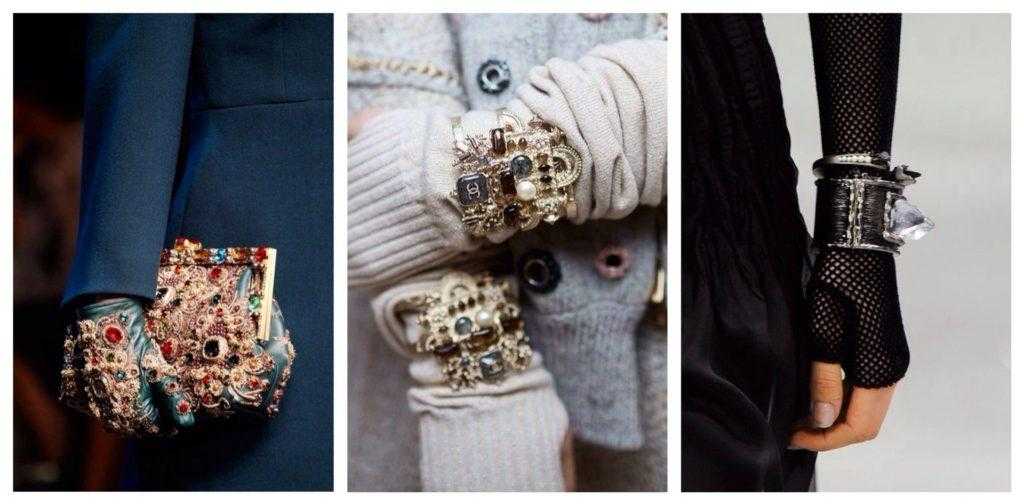 - Дополнить образ перчатками и добавить им изюминку помогут браслеты, надетые поверх их.