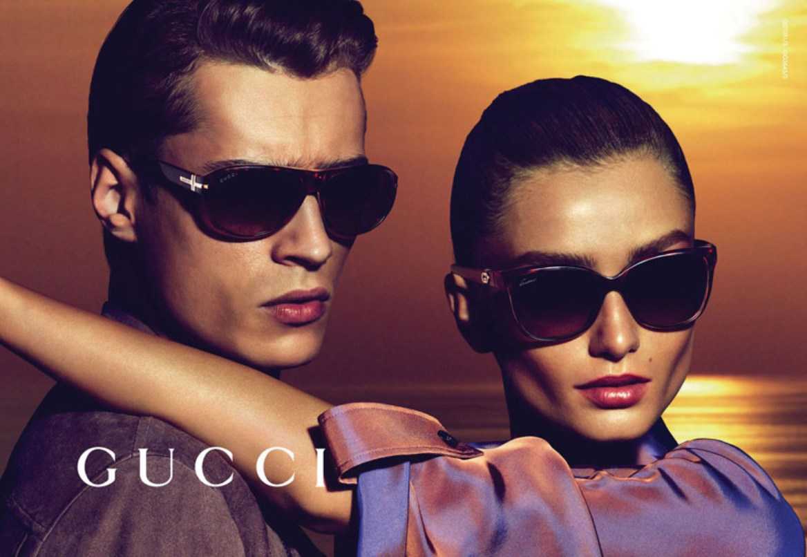 Итальянский бренд GUCCI предлагает модели солнцезащитных очков в гламурном исполнении. Они украшены кристаллами Сваровски и, как и любой предмет от данного производителя, имеют определенный неповторимый шарм. В качестве делового стиля они, конечно, не подойдут, но для пляжного отдыха, вечеринок и ночных клубов – это самый проверенный вариант.