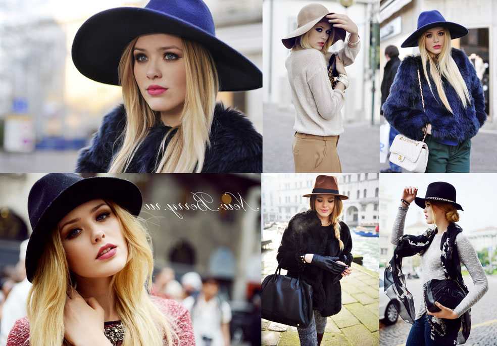 Любая модель с широкими полями придает своей обладательнице слегка богемный вид. Она уместна с пончо, широким длинным пальто, короткой шубкой. Фасоны этих модных шляп разнообразны, как и их цвета. Никто не удивится, увидев девушку в песочном или изумрудном головном уборе с широкими полями. Наиболее смелые закрепляют на тулье контрастную или узорчатую шелковую ленту.