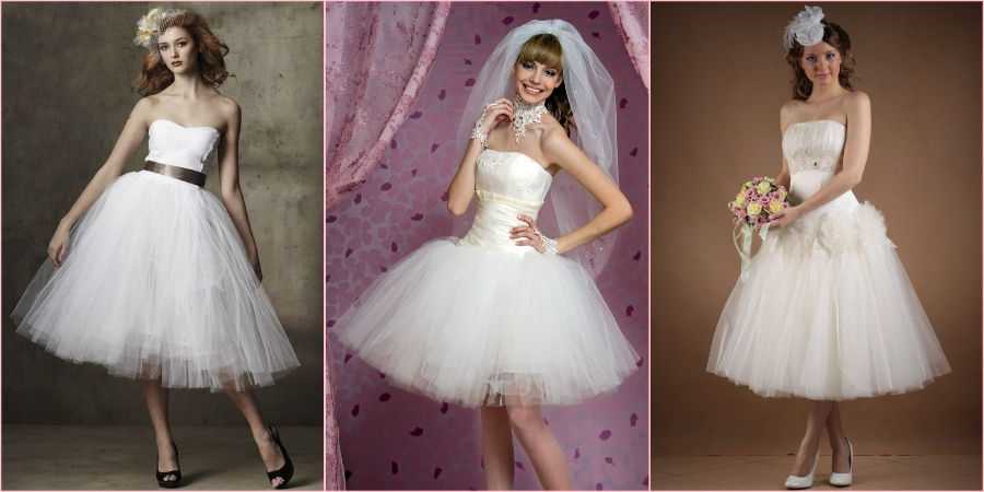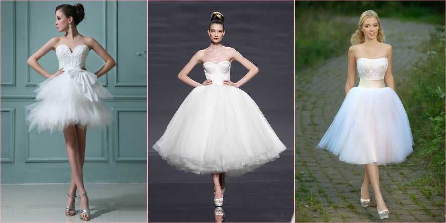 Еще один нестандартный выбор – это короткий пышный наряд, который, кстати, является одним из модных на сегодняшний день. Его длина может быть: