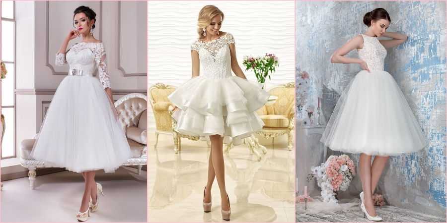 Рассматриваемые модели отличное решение для девушек, мечтающих выглядеть в свой свадебный день настоящей принцессой, но которые по каким-то причинам, не хотят надевать длинный наряд.