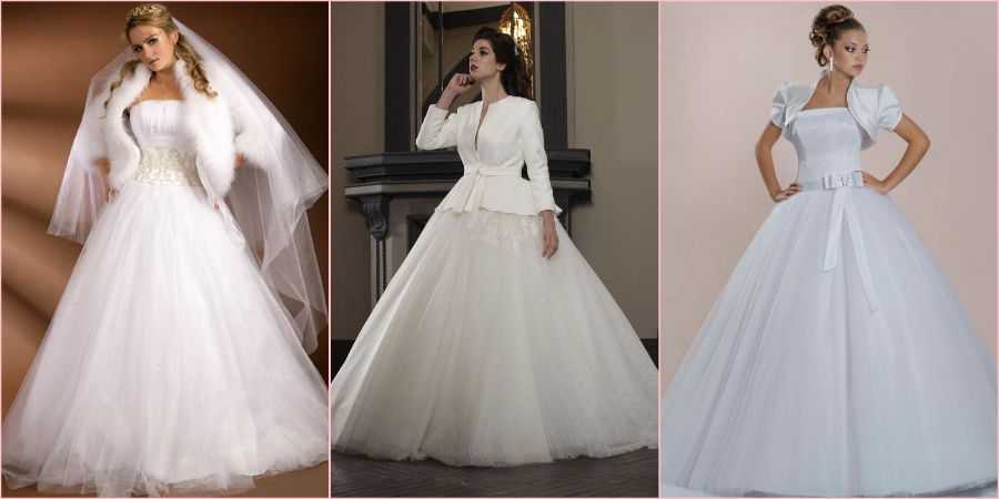 Для зимней свадьбы замечательно подойдет накидка из меха или полушубок, а для прохладной погоды – болеро или жакетик.