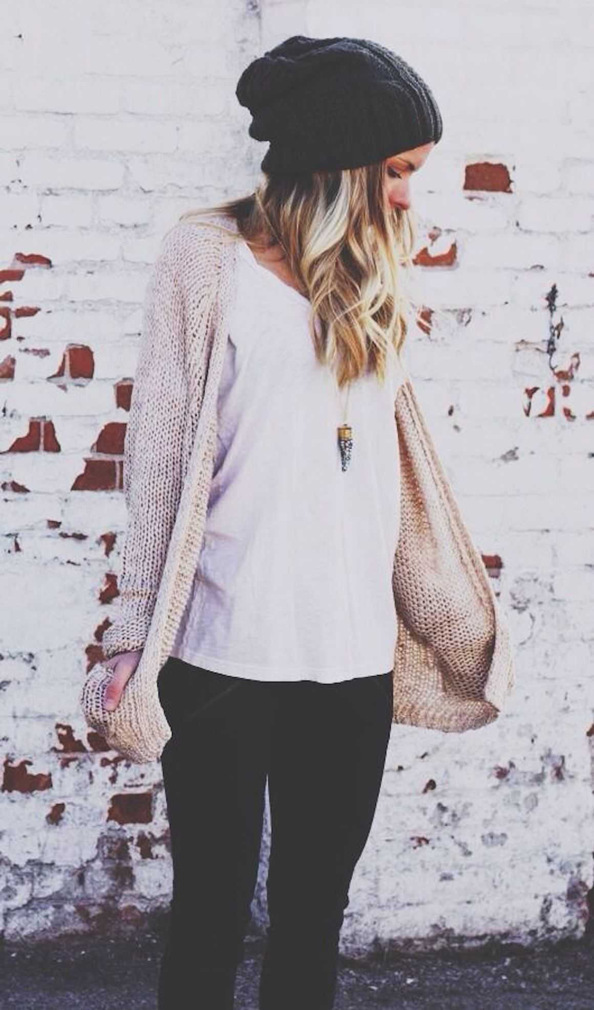 Деловой стиль. При сочетании «деловой стиль — шапка» стоит помнить о некоторых ограничениях. Согласитесь, ансамбль из яркого головного убора, украшенного пайетками или стразами и прямого строгого пальто базового цвета будет смотреться вычурно. Но это не значит, что в деловом стиле шапка-носок вообще неуместна, просто выбирать нужно нейтральный вариант. Для строгих элементов гардероба подойдут, прежде всего, белый и черный цвета. К нейтральным относятся так же серый и песочный. Интересно могут смотреться шапочки песочного цвета и даже насыщенного винного.