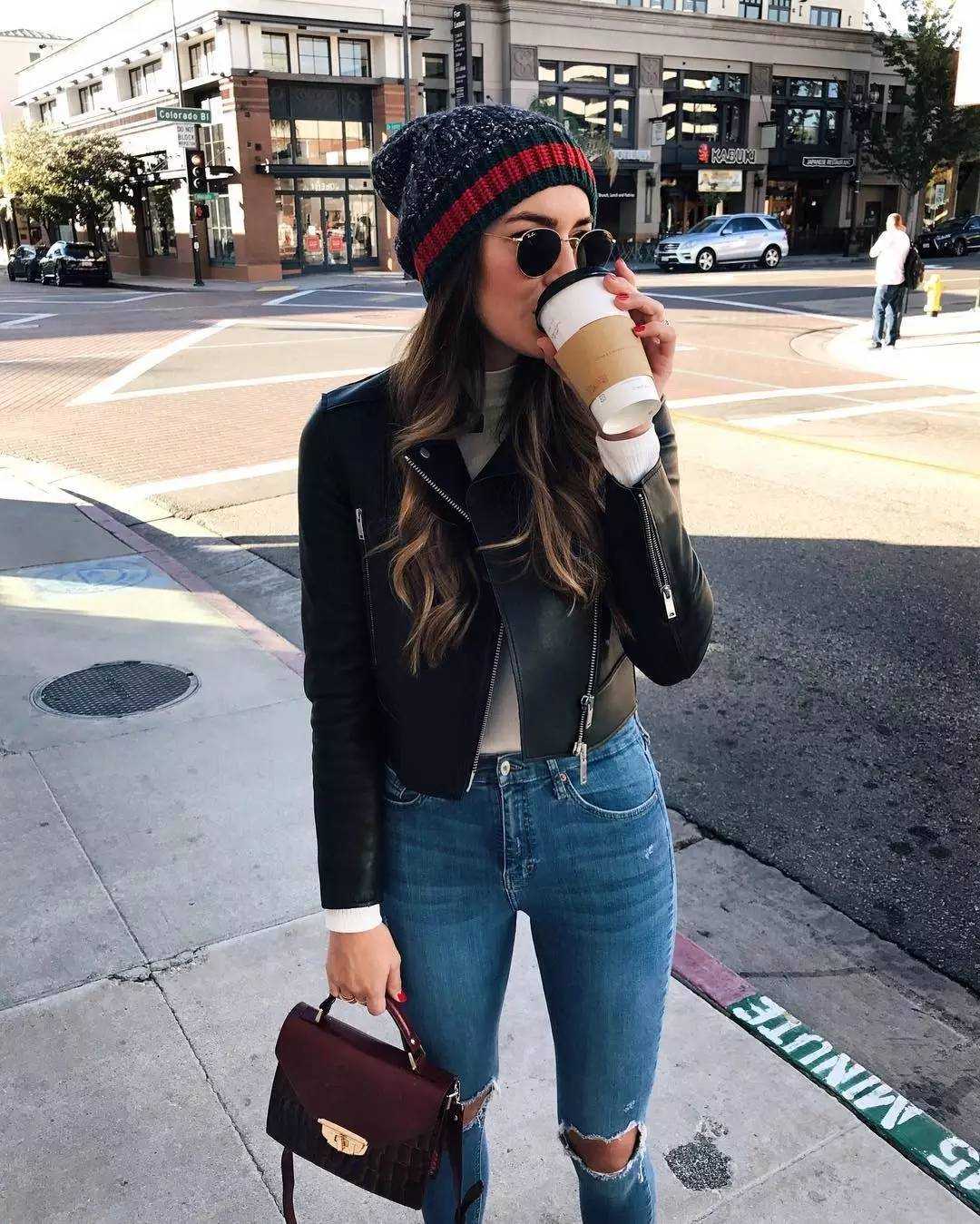 Довольно распространенное сочетание кожаной куртки и ушанки. Чтобы соответствовать духу времени, рекомендуется присмотреться к ушанкам с комбинацией кожи и меха. Также допустимо сочетание кожаной куртки и шапки-носка.
