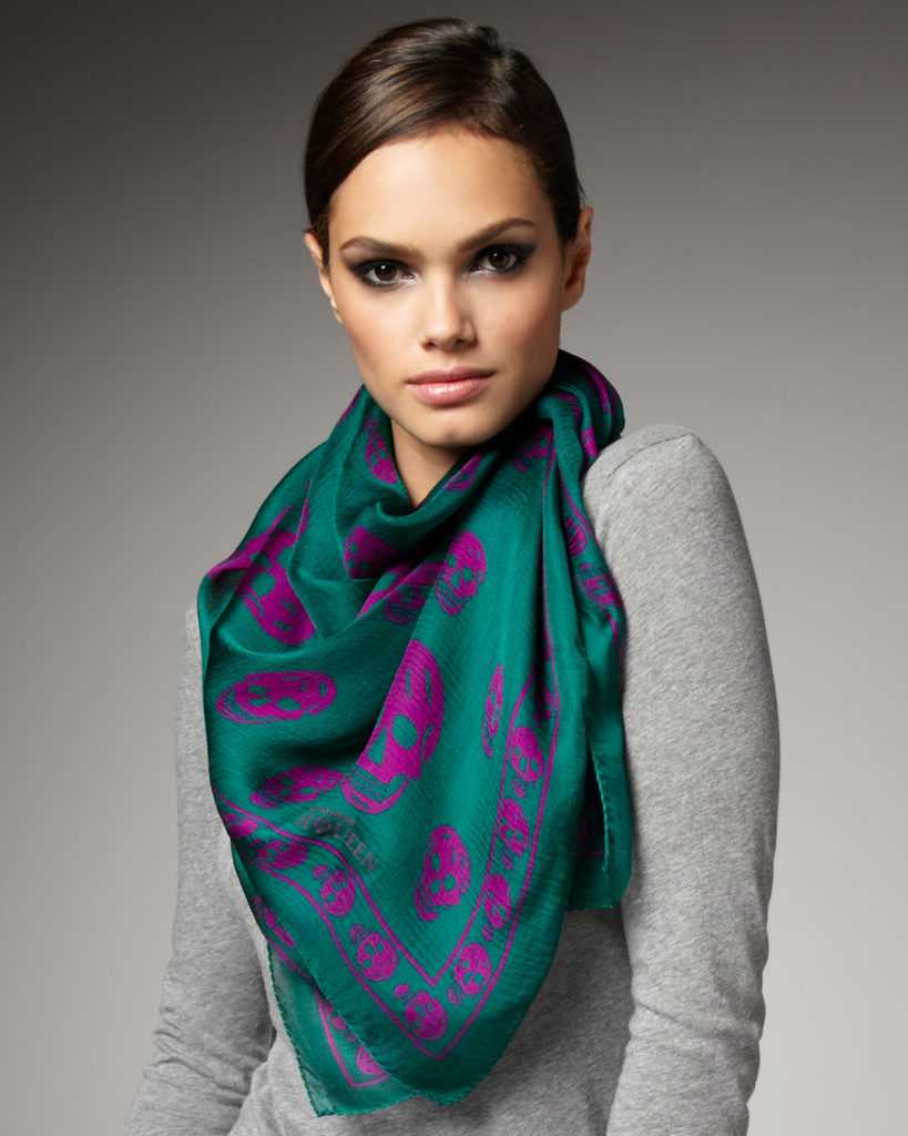 Но главным критерием выбора должен служить ваш собственный цветотип, то есть оттенок глаз, кожи и волос. Для девушек со смуглой кожей и темными волосами подойдут шарфы контрастных и пастельных оттенков, в то время как бледнокожим обладательницам светлых глаз и волос лучше отказаться от шарфов в бледной цветовой гамме.