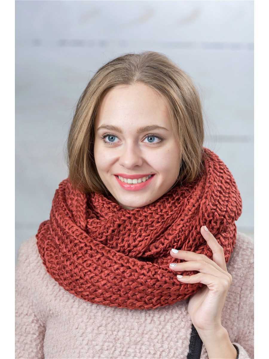 Общемировое признание получил шарф-снуд. Создают аксессуар из разных материалов. Особо популярны вязаные изделия.