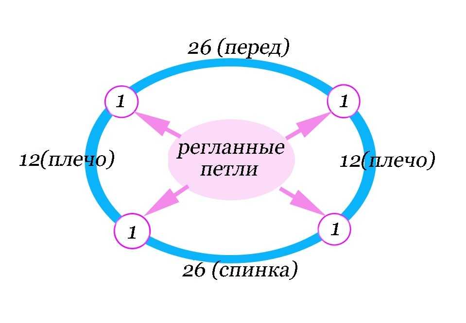 После распределения и маркировки регланных петель, сделайте прибавление петель (с помощью накидов или провязыванием из протяжки) в каждом 2-м ряду.