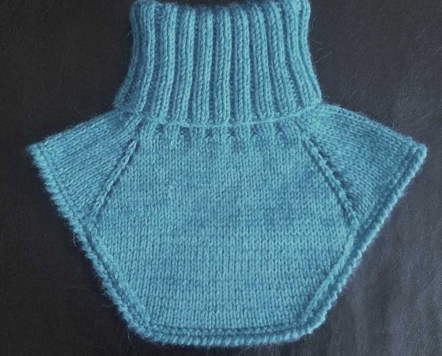 Обычно, манишку вяжут круговыми спицами, и начинают от воротника-стойки. Для модели, которая вяжется резинкой, необходимо будет 150 граммов пряжи и спицы четыре мм на леске. Перед началом вязания лучше всего связать рапорт 10 на 10 см, который даст возможность рассчитать нужное для набора число петель.