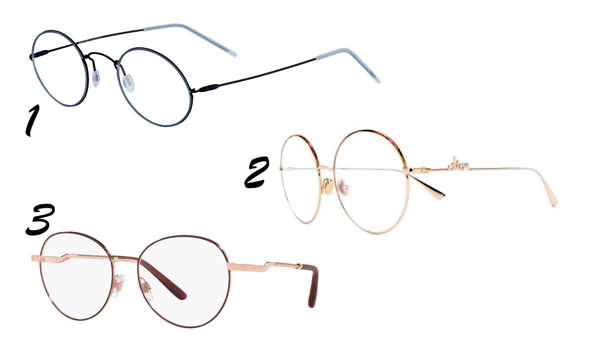 Стоит выбирать очки с тонкими оправами и перемычками, деликатными дужками и низкой посадкой линз.