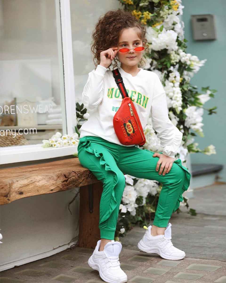 Спортивный костюм подходит для осени 2021 года — по понятным причинам. Неоновый костюм с топом с легкостью обоснуется в повседневном гардеробе юной модницы.