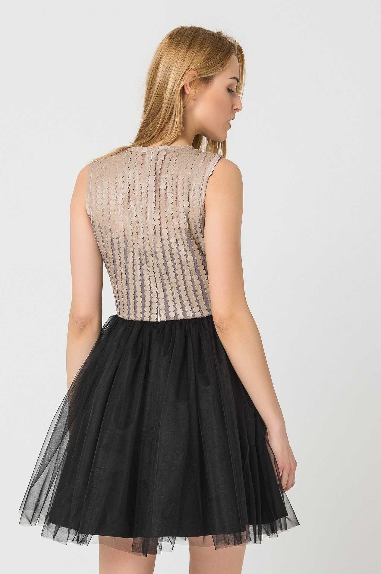Универсальными и функциональными являются во все времена женские наряды средней длины, не исключение и платья с лентами из фатина вместо юбки. Многослойная одежда в длине миди замечательно вписывается в праздничные и в повседневные сеты. Все зависит от материала лифа: для фасонов на каждый день используется трикотажное полотно, вискоза, хлопок, лен. Для вечерних вещей пригодятся: бархат, атлас, шелк, жаккард, шифон. Непременно вечерние одеяния богато декорируются с помощью страз, пайеток, бусин, бисера, камней и роскошной вышивки.