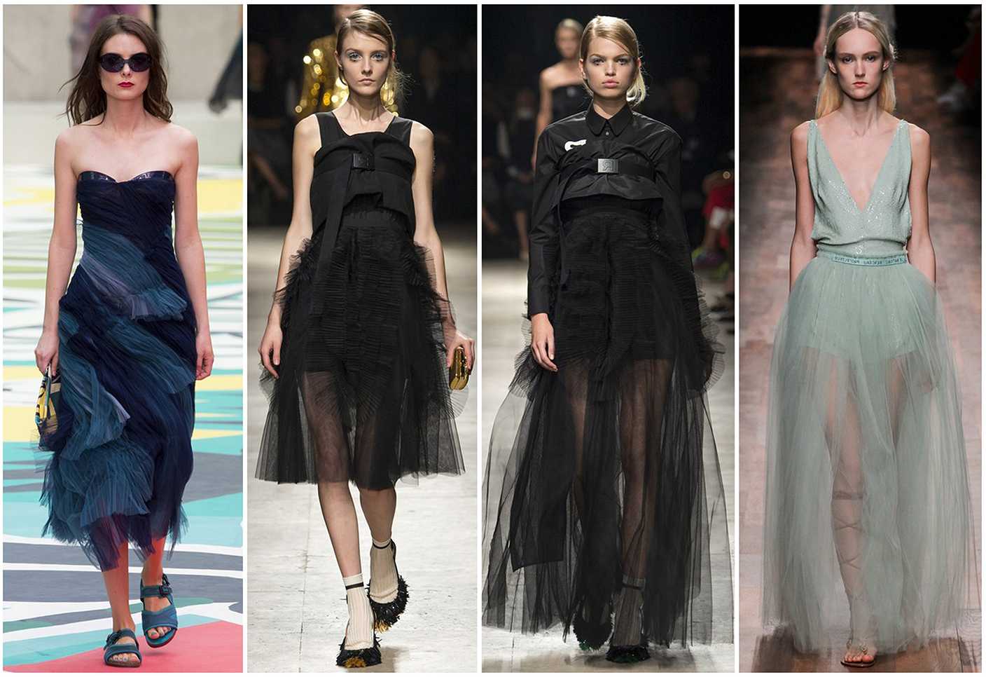 Особо отмечены модели со шлейфом, придающие женскому облику нежность и романтичность. Модные эксперты утверждают не первый год – фатиновые юбки придают аристократизм и элегантность дамам всех сословий, превращают золушек в королев.