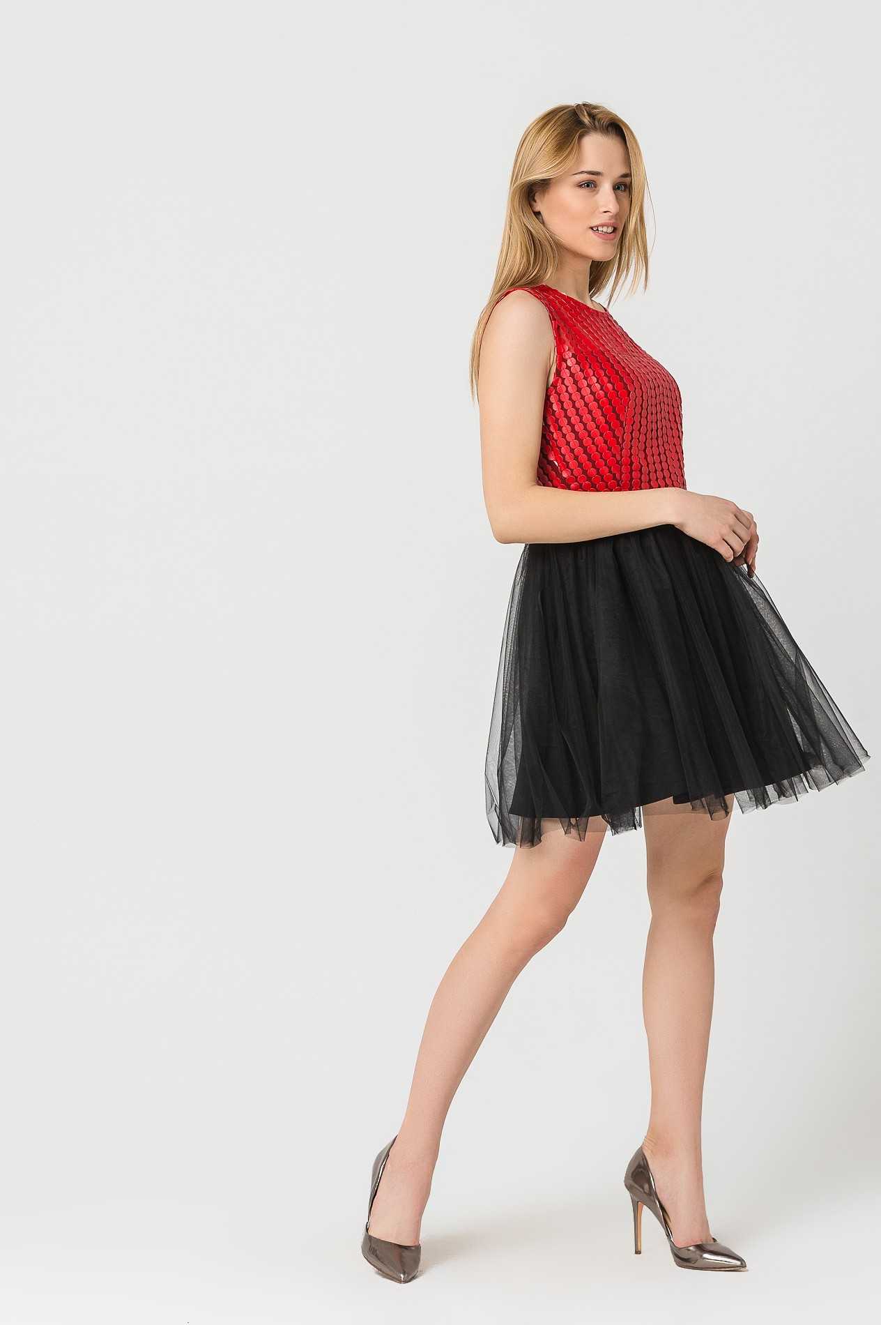 Не секрет, что короткие платья с фатином рекомендуются лишь барышням с красивыми стройными ногами. Смотрятся такие изделия весьма эпатажно и предпочтительны для юных девчат и молодых хрупких женщин, обладающих смелостью. Фатиновый наряд вызывает к себе пристальный интерес, и не каждая леди способна выдержать натиск внимательных взглядов толпы. Юные особы могут дополнить образ леггинсами и балетками. Прекрасно впишутся с молодежный лук узкие джеггинсы и кеды.