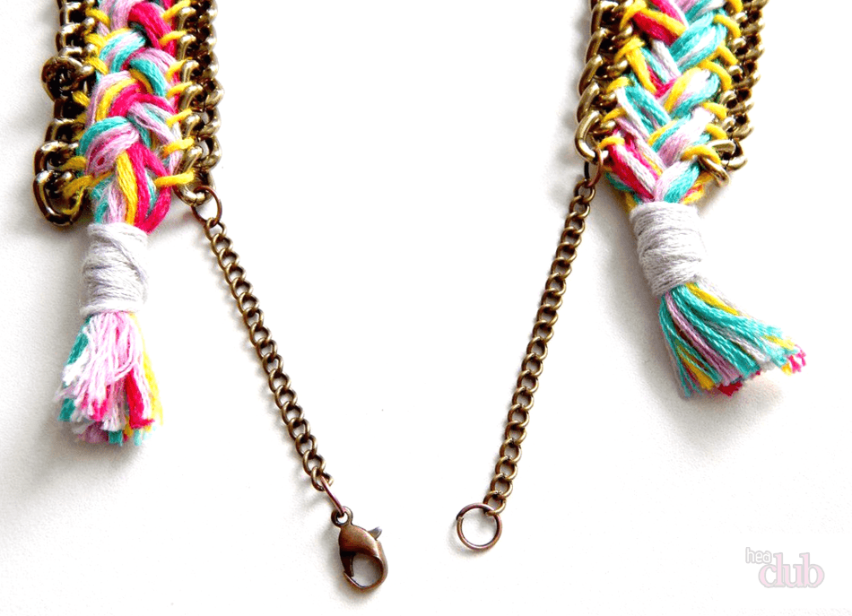 - После того как все нити сплетены, закрепляем кончики и застежку.