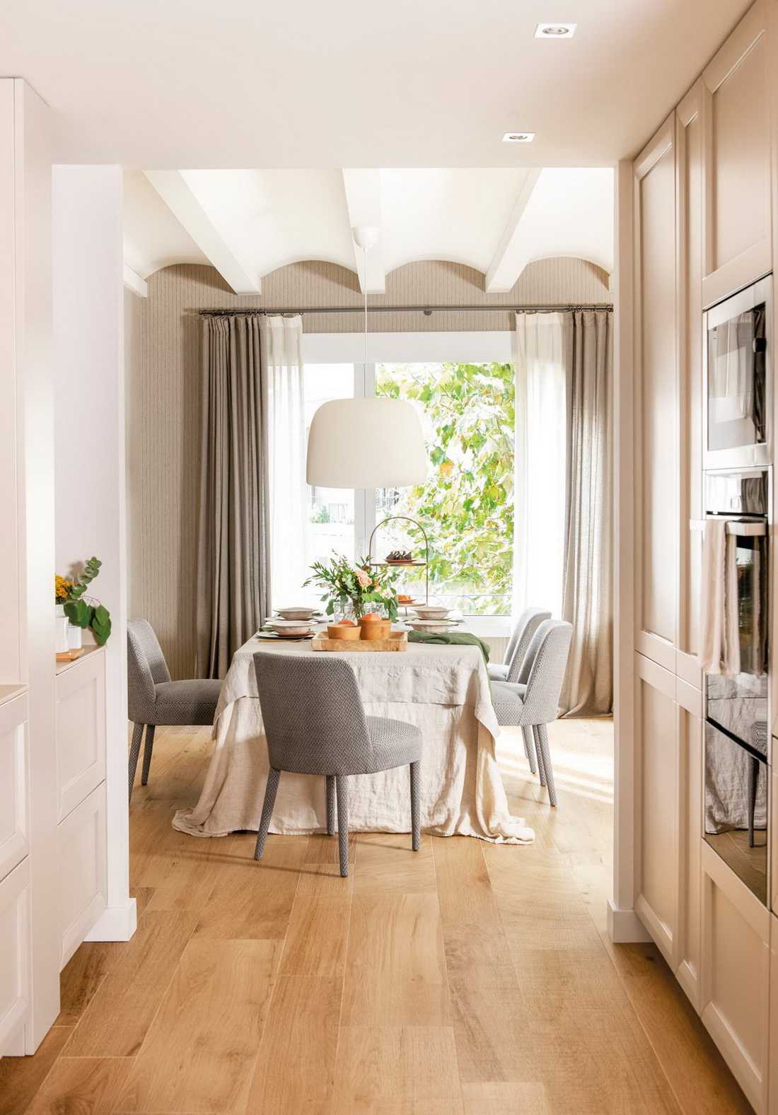 Добавить комнате шарма позволяет керамическая либо глиняная плитка. Если комната с системой «теплый» пол, по плитке даже босиком будет приятно ходить. Особенно стильно пол из плитки смотрится в кухне. Потолок, обычно, декорируют деревянными балками, а межкомнатные проходы оформляют в виде арок. По периметру всего потолка может красоваться стильная роспись с испанским колоритом.
