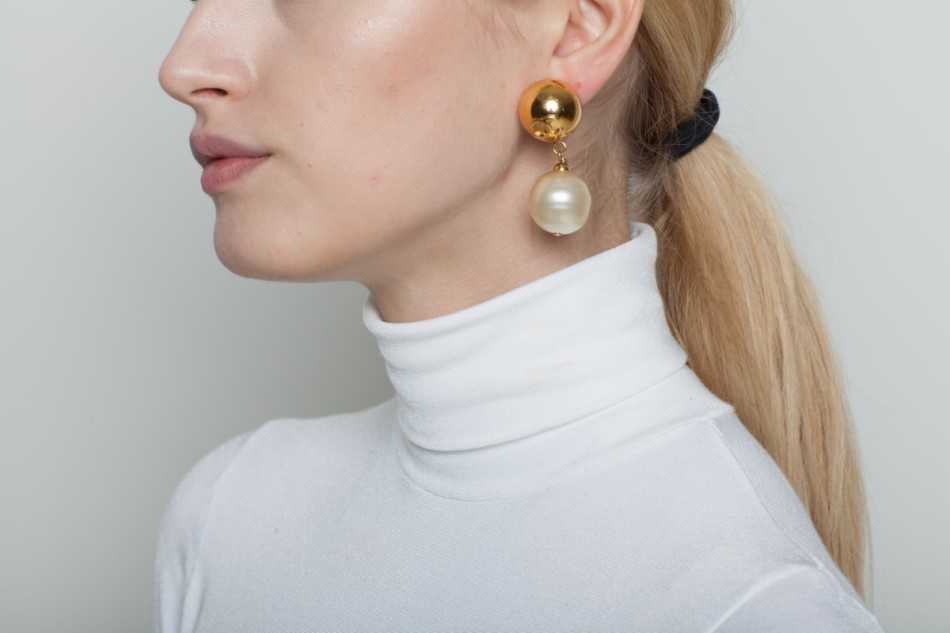 Зимой белый жемчуг на золотом фоне смотрится особенно нежно и красиво. Для зимы 2022 года рекомендуется выбирать жемчужины покрупнее. Кстати, для образа-асимметрии подобные украшения подойдут идеально.
