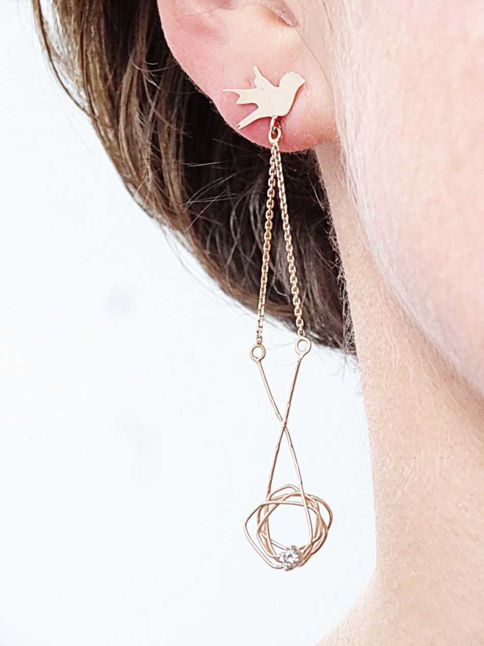 Ещё один вариант золотых серёг на весну-лето-2022 с птичкой