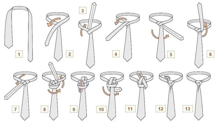 Данный способ именуется в честь герцога Виндзорского. Завязав шейный аксессуар таким методом, его можно легко ослабить и снять. Процесс создания галстучного узла состоит из следующих пунктов: