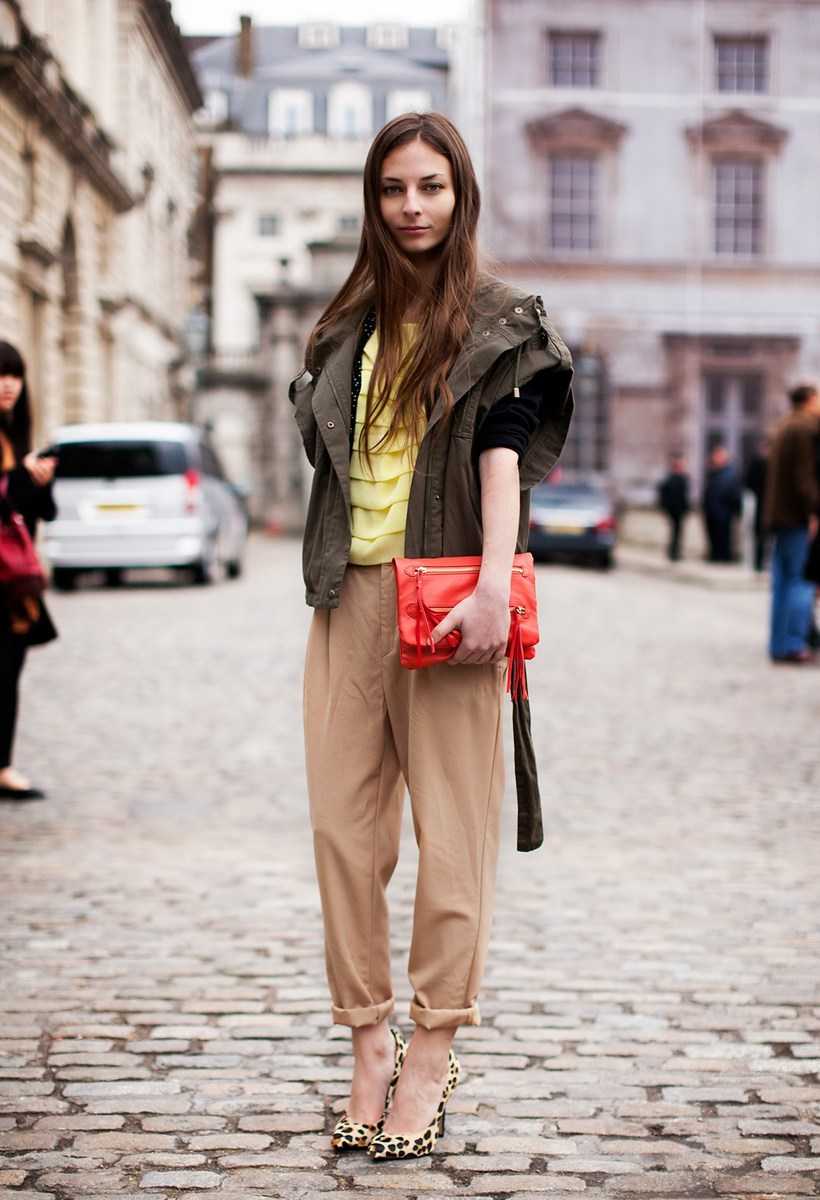 Весной и осенью носите карго с кожаными и джинсовыми куртками, демисезонными пальто.