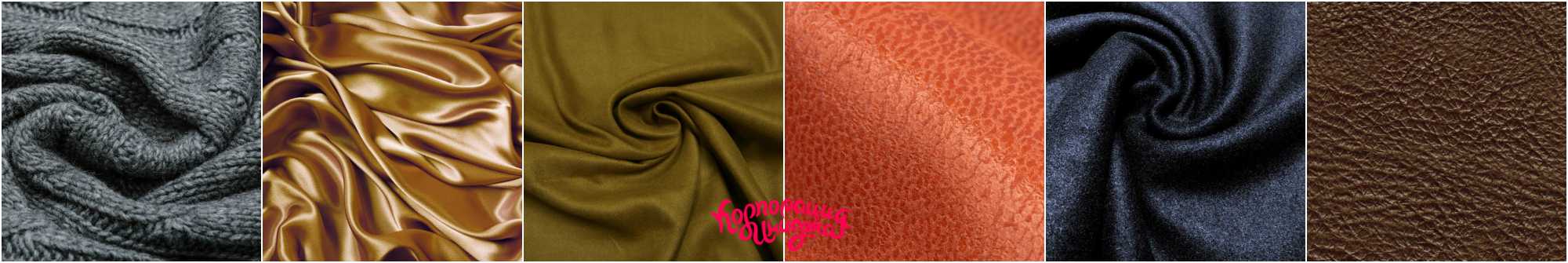 Также на вас будут отлично смотреться ткани самой простой текстуры — это грубое сукно, байка, велюр, мокрый шёлк, тяжёлый шёлк, мягкий драп, байка, мягкий бархат, брокат, атлас, вельвет, мохер, велюр, замша, лён, букл, сукно, кружева, бязь, ангора, твид, канва.