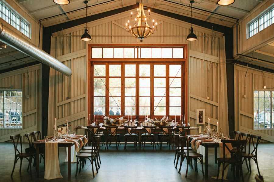 Индустриальные свадьбы характеризуются необычным дизайнерским решением. Они используют особый фуршетный стиль, металл и геометрию в декоре. Такие свадьбы проводятся обычно на складах, в лофтах и в старых аутентичных залах.