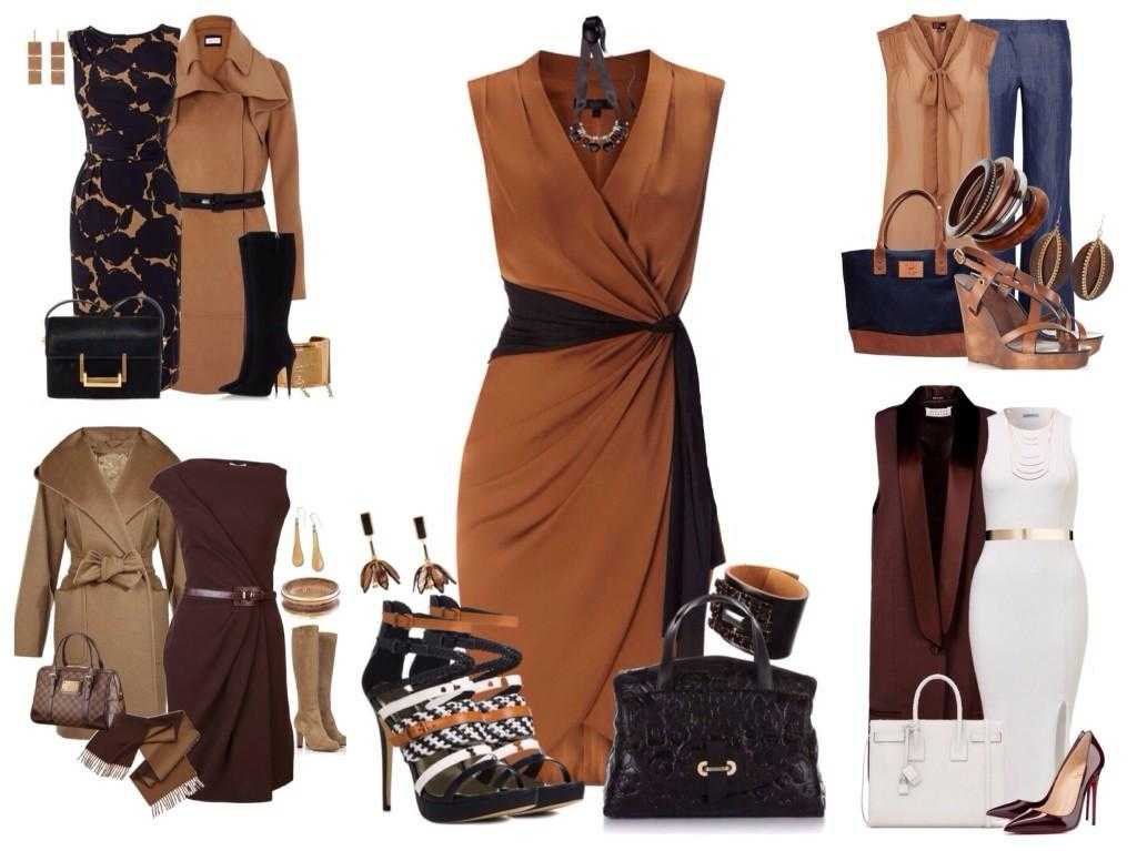 На фото сетах представлены образы для очаровательных бизнес-леди в светло-кофейных и бурых нарядах. Здесь показано, каким должен быть деловой костюм и одежда классического стиля.