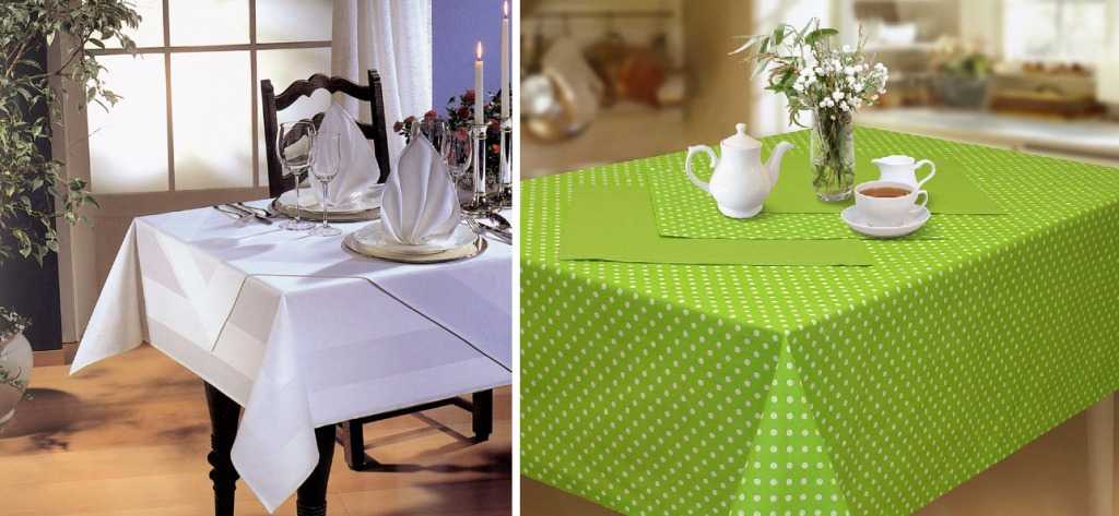У каждой хозяйки в шкафу хранится нарядная белая скатерть. Однако не стоит ограничиваться только одной моделью, сейчас в магазинах представлен широкий выбор изделий самых разных размеров, цветов и стилевого оформления. Для прямоугольных столов подойдут скатерти на 50 см длиннее столешницы, а для круглых или овальных – на 100 см шире диаметра стола.