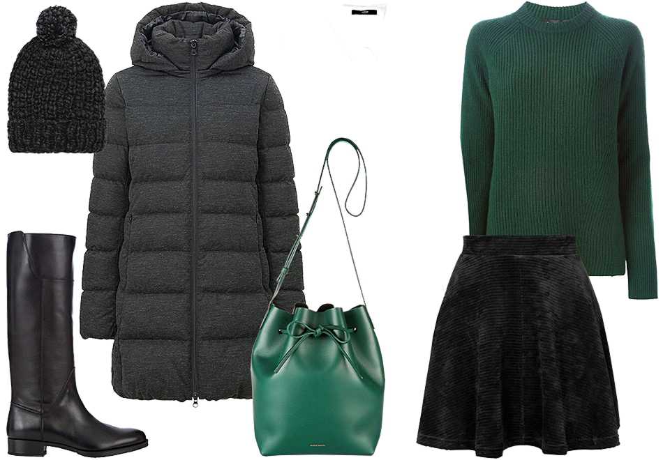 Выбирая, с чем носить длинный пуховик зимой или холодной ранней весной, можно остановиться на практически всех предметах гардероба. Короткие и длинные платья и юбки, джинсы и брюки прямого покроя составят с таким пальто органичный тандем. В качестве аксессуаров выбирают однотонные или контрастные по цвету перчатки и сумку.
