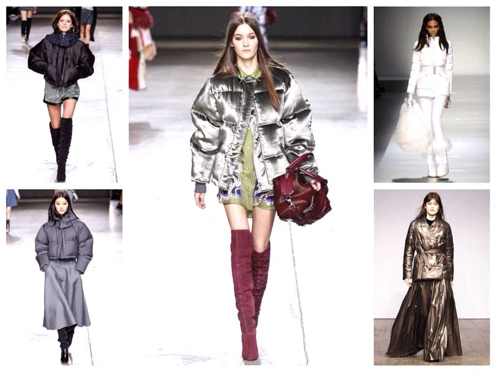 В тренде – длинные пуховики тонкие и объемные, которые удачно миксуются с туфлями, сапогами разных моделей, ботинками