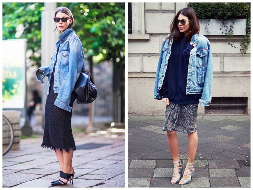 Офисный стиль без строгого дресс-кода тоже допускает присутствие в гардеробе свободной куртки из денима. Ее можно использовать в качестве пиджака. Остальными элементами делового костюма могут быть белая рубашка или светлая блузка простого кроя, юбка-карандаш, черные туфли на среднем каблуке с минимальным декором или без него.