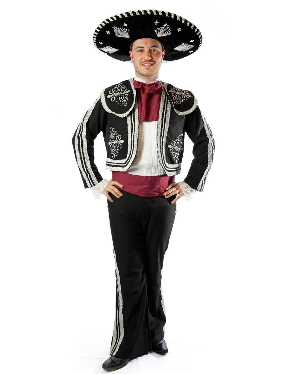 Традиционной мужской одеждой у мексиканцев считаются узкие черные брюки с широким поясом, белая рубаха с длинными рукавами, короткая черная куртка и непременно яркий (желательно, красный) шейный платок. Ну и, конечно, сомбреро. Сомбреро может быть разных цветов, даже черного с яркой отделкой.