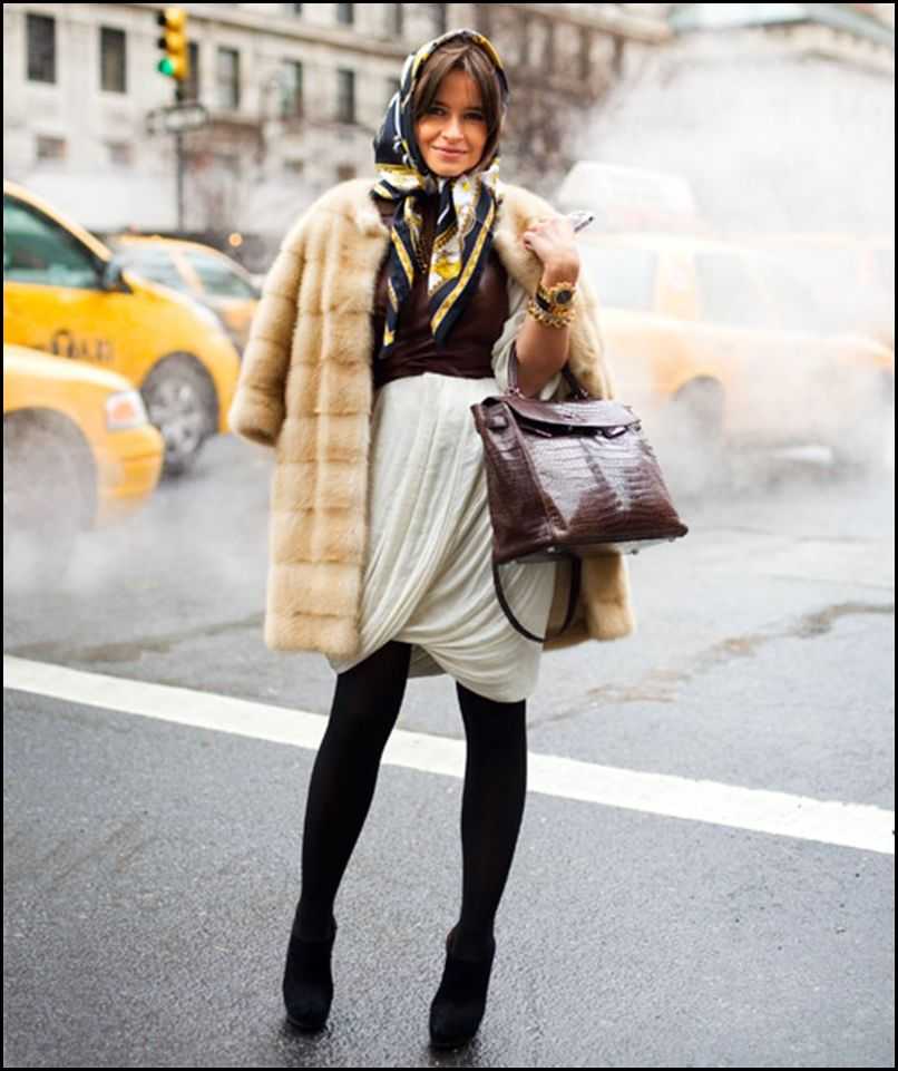 Если дама не мыслит, как носить шубу без воротника, она может подобрать теплый шарф. Лучше, если аксессуар будет в виде хомута, обмотанного вокруг шеи в несколько слоев, но без излишества. Свободно свисающие концы шарфика с меховым совершенством сочетаются плохо. Зная, как носить шарф с шубой с воротником, женщина дополнит свой образ и получит дополнительный комфорт и тепло.