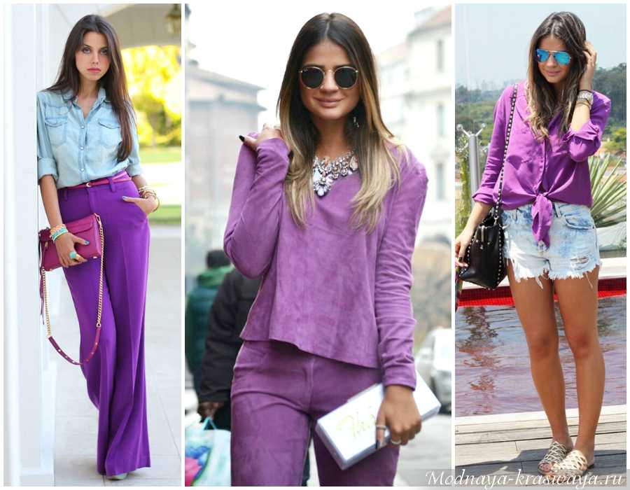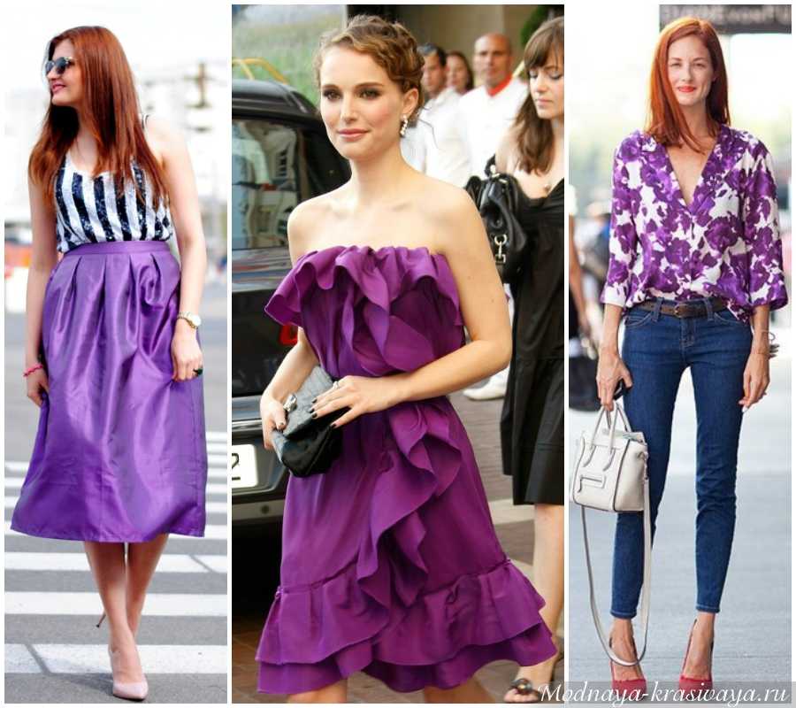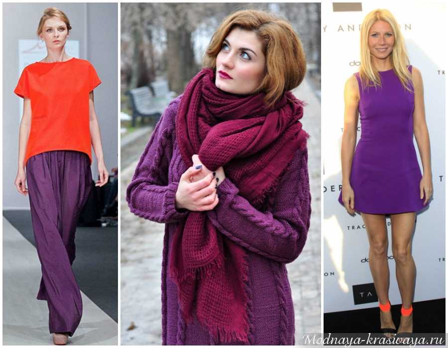 Многие женщины задаются вопросом, кому пойдет фиолетовый – в натуральных красках человеческого тела почти совсем нет аналогичных оттенков. Нельзя же подбирать одежду по цвету вен на руках?! Тем не менее, не обязательно равняться на подобное. Иногда красота прячется в контрастах.