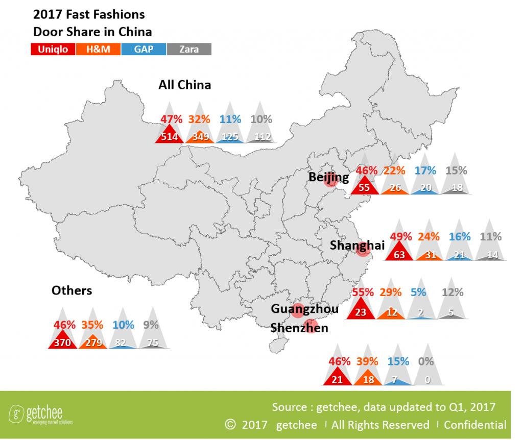 514 новых магазинов в 2017 году по всему Китаю — китайские модники ходят в японской одежде от Uniqlo, тогда как Zara и GAP проигрывают сражение за китайский рынок повседневной моды.