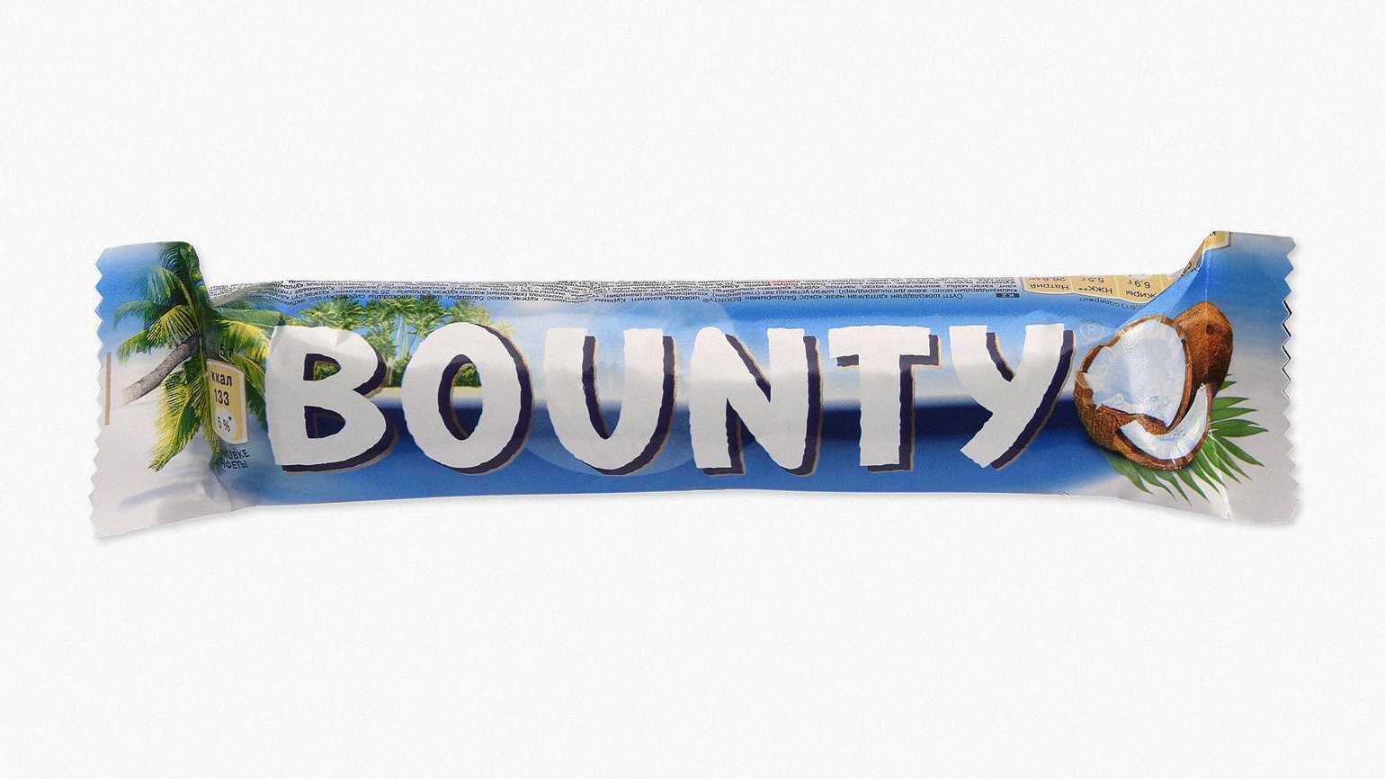 Самый нежный и изысканный из батончиков — кокосовый Bounty (что в переводе с английского означает «Щедрость») стали производить в 1951 году. Изначально в его оформлении синего цвета было не очень много, но постепенно он стал всё больше заполнять поверхность обёртки и вытеснять с рекламных плакатов другие цвета.