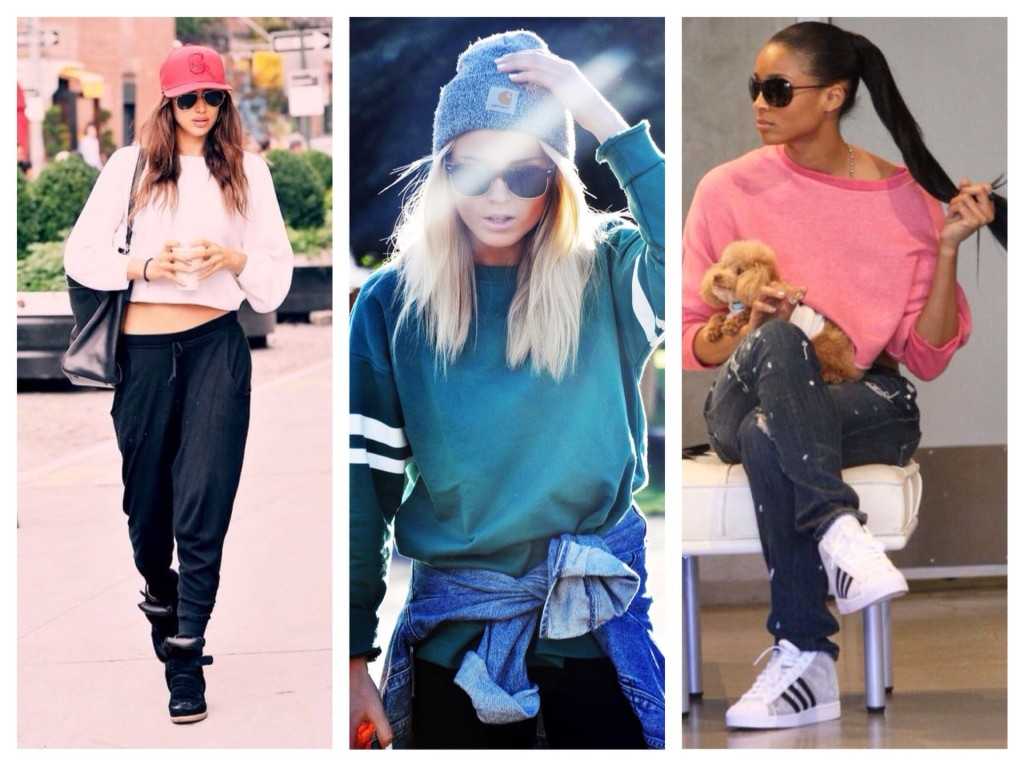 Одежда спортивного стиля предназначена скорее для повседневной носки — она имеет крой, сходный с тренировочными костюмами, похожие детали и отделку, но для настоящего спорта будет непригодна. Это касается и обуви: беговые функциональные кроссовки — для спорта, слипоныслипоны и сникерсы на платформе — для создания свежего образа в стиле sport-chic.