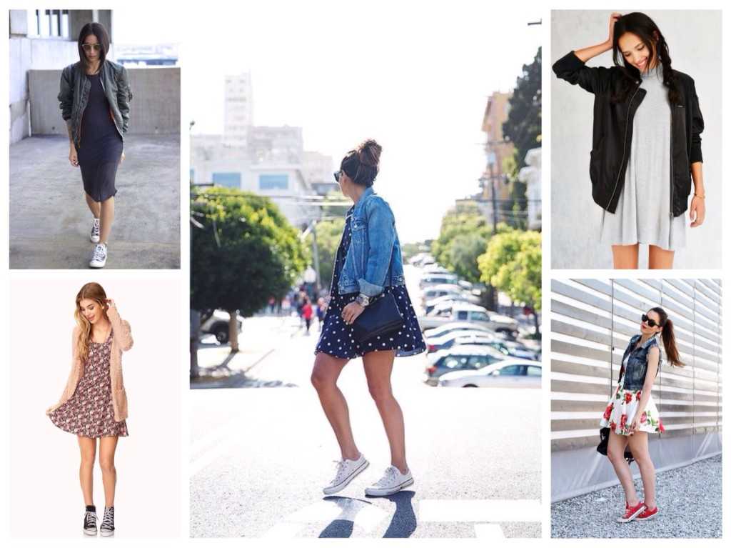 Один из самых популярных и простых луков – сочетание кроссовок, футболки поло и свободной юбки. Но это далеко не единственный вариант – можно создавать гармоничные аутфиты из платьев оверсайз, кроссовок, рюкзака.