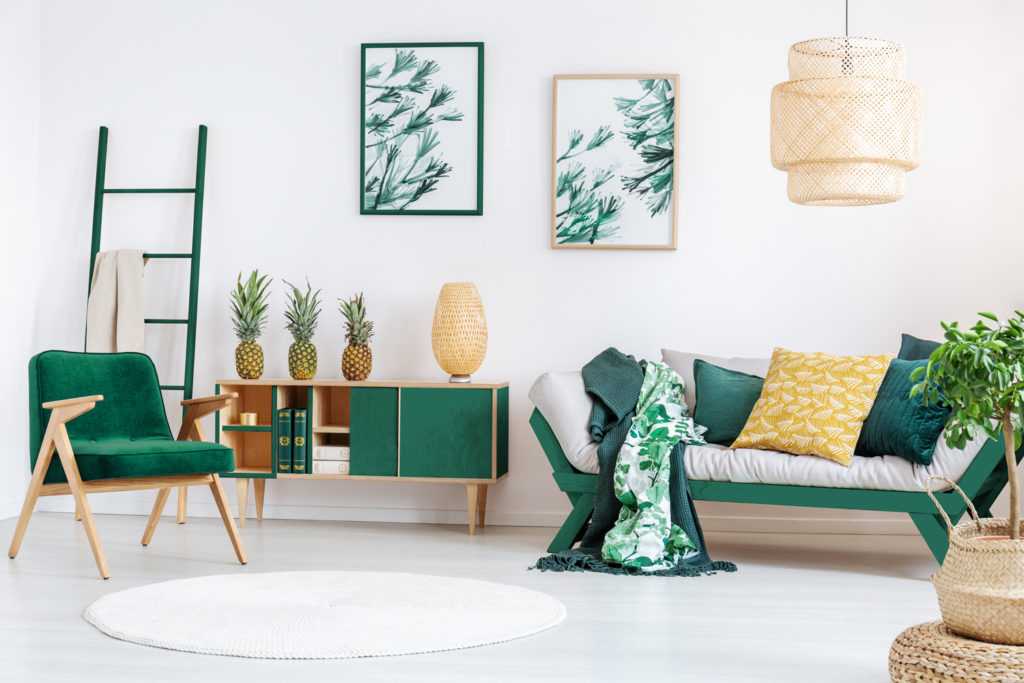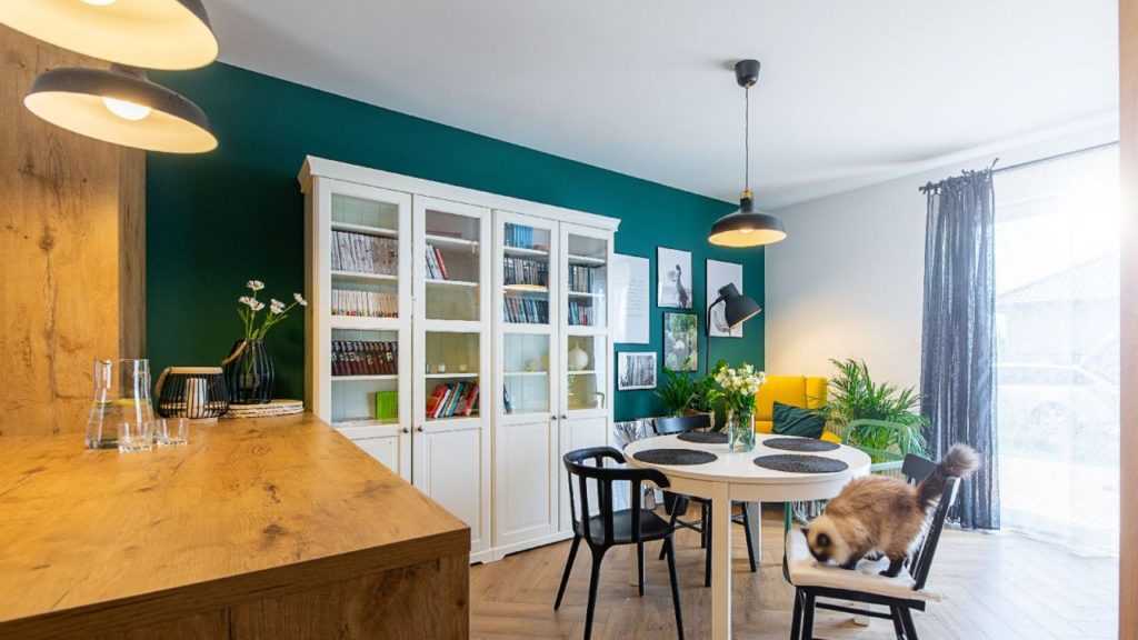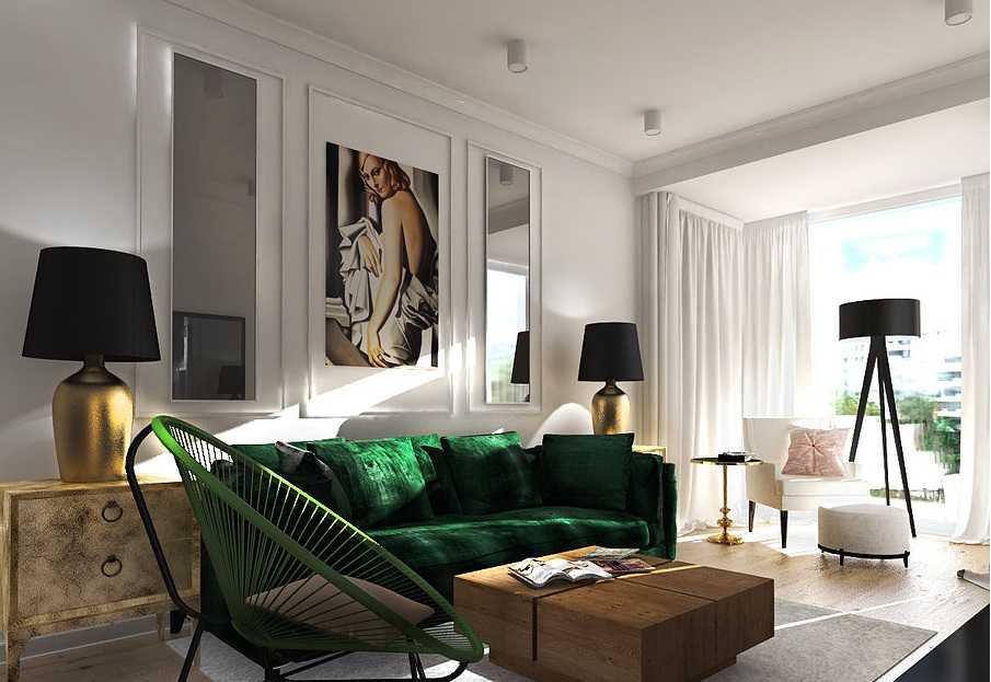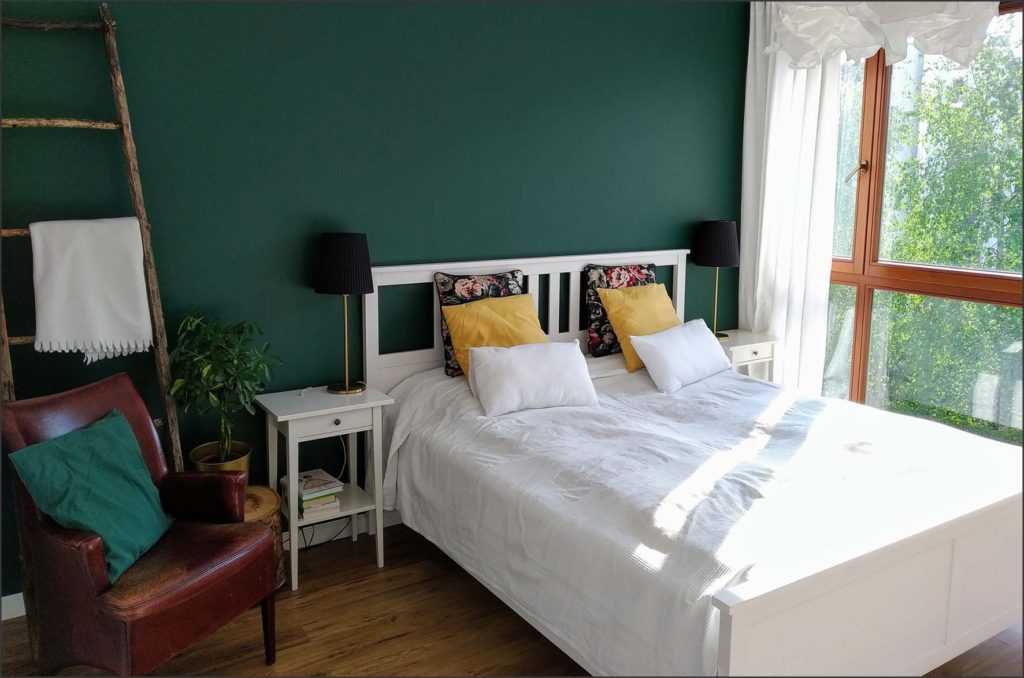 Изумрудный цвет на стенах вашего дома может стать проблемой. В конце концов, это очень сильный цвет, который мгновенно наложит характер на весь интерьер. Прежде чем принять решение, давайте подумаем, достаточно ли просторна комната, чтобы «вместить» такой яркий цвет. В слишком маленьком интерьере интенсивно зеленые стены быстро начнут утомлять и будут вызывать впечатление нервозности. Во-вторых, достаточно ли у вас смелости, чтобы покрасить всю комнату в зеленый цвет, или, скорее, вы предпочитаете сделать изумрудную стену сильной точкой расположения?