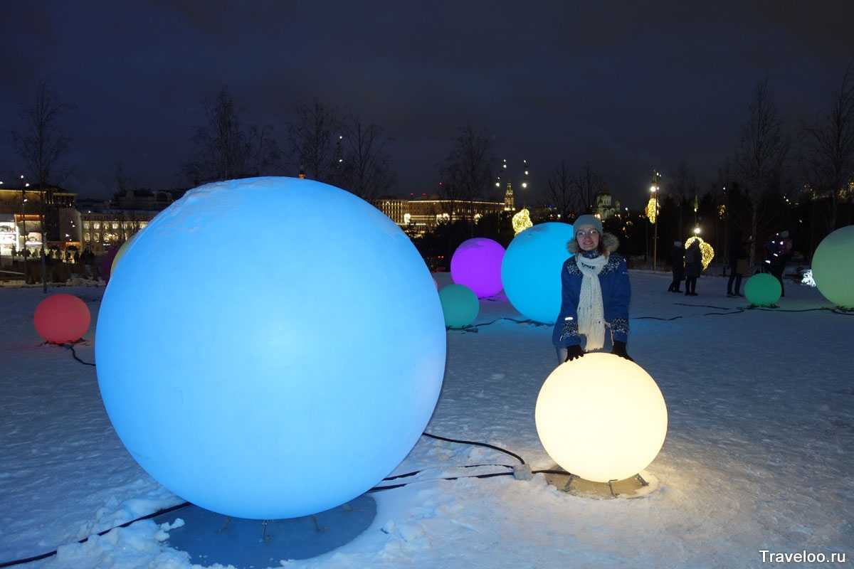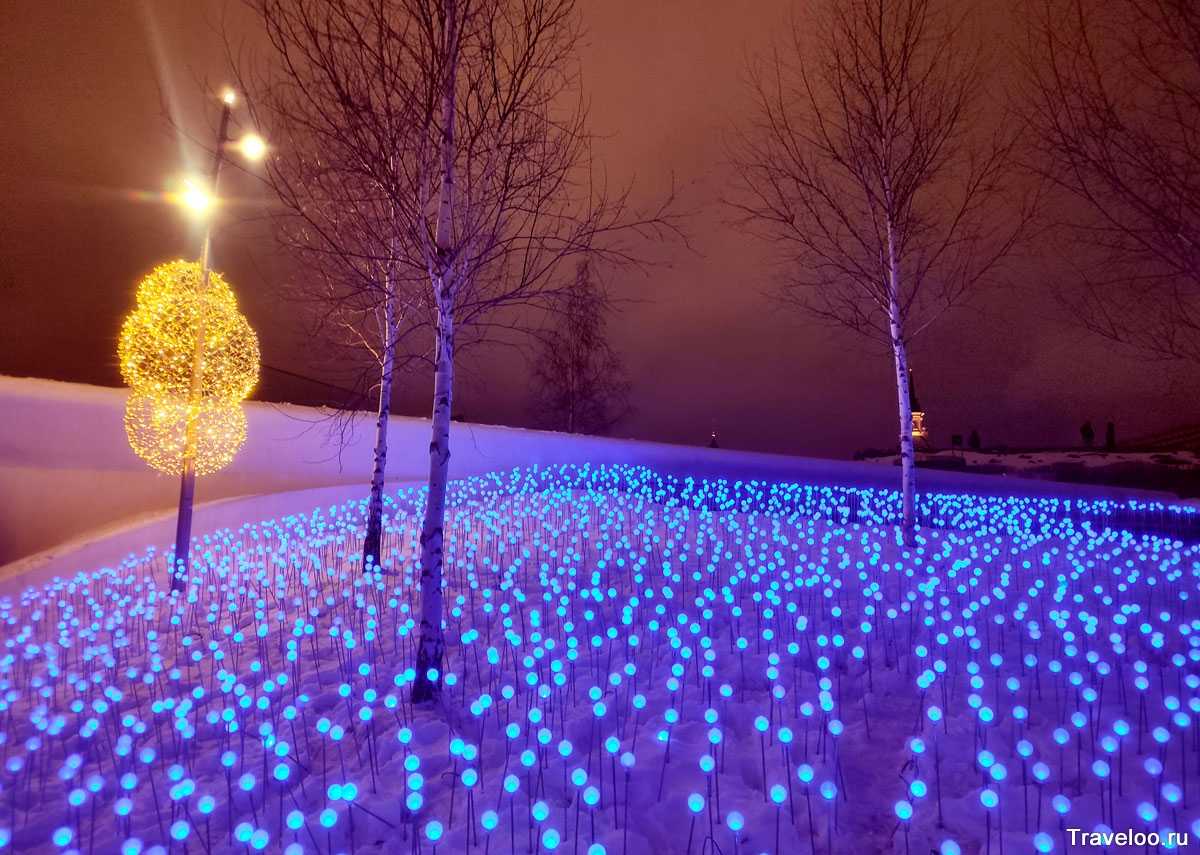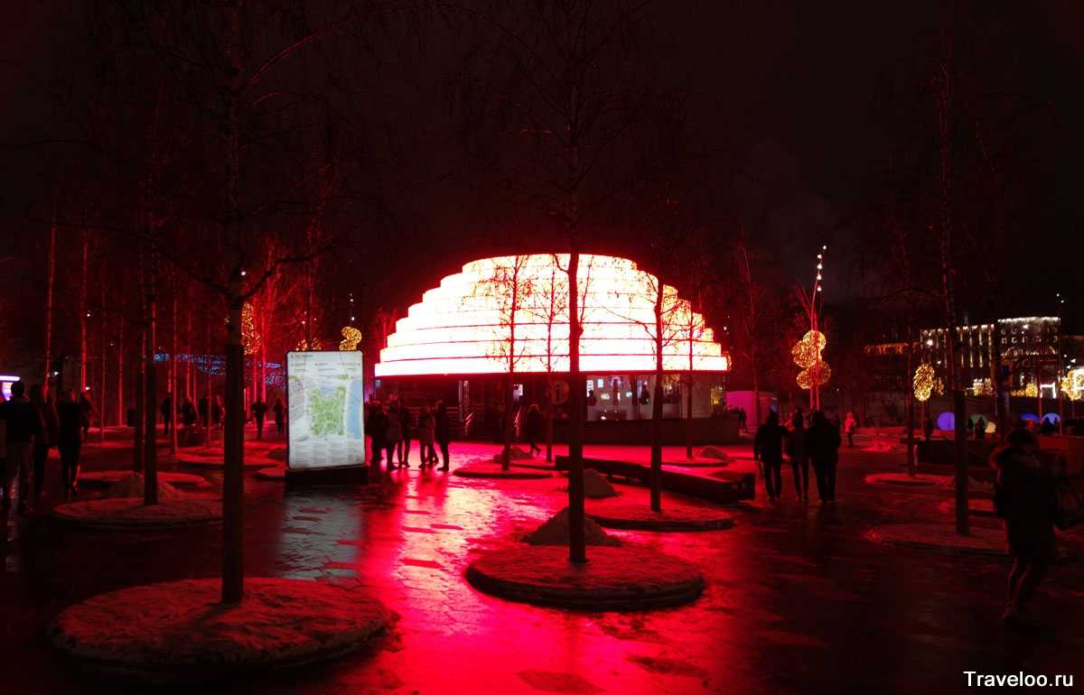 И еще одна новогодняя инсталяция в Праке зарядье, огоньки горят разными цветами (расположены вокруг павильона Ляденой пещеры):