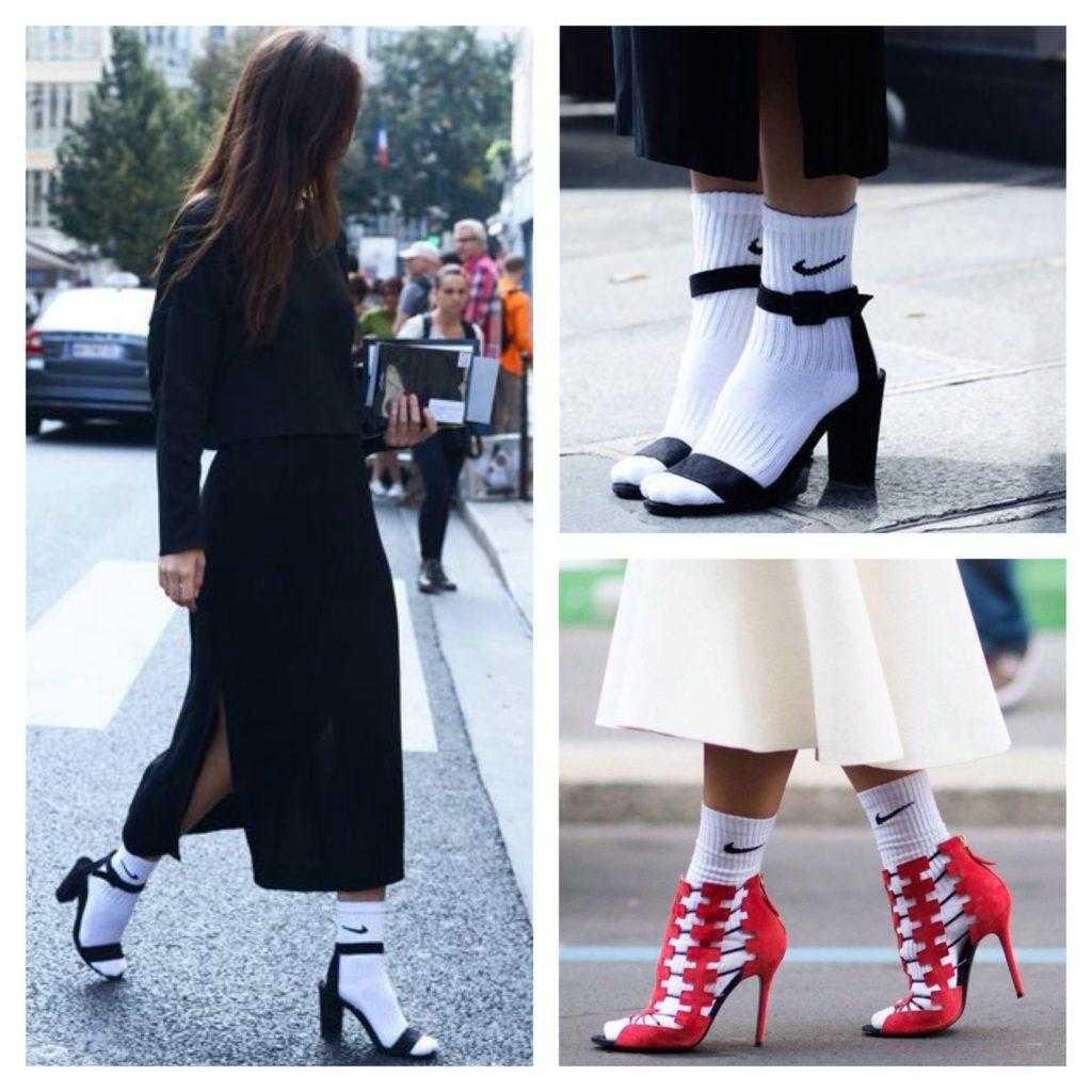 Такое сочетание недопустимо в деловой обстановке и на светском мероприятии со строгим дресс-кодом. Запрет распространяется на все комплекты с закрытыми и с открытыми босоножками. А в неформальном стиле подобная комбинация допустима, но должна быть продумана.