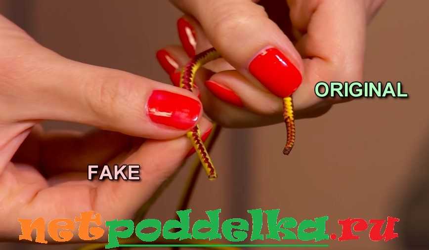 Осмотр шнурков ‒ хороший способ как отличить настоящие Тимберленды от подделки. У оригинала они сделаны из нейлона, поэтому обладают отличными показателями прочности и износостойкости. Шнурки на ощупь должны быть плотные и не скользкие. Обычно они сделаны из двух нитей: одна повторяет цвет ботинка, а вторая ‒ отделку задника.