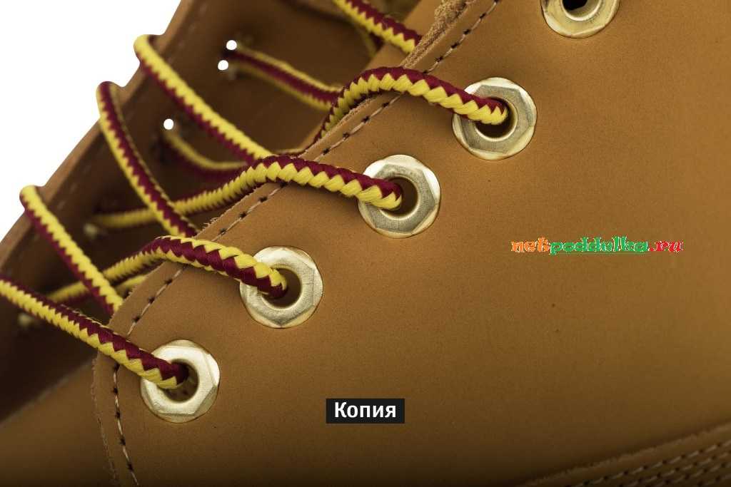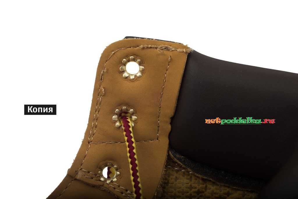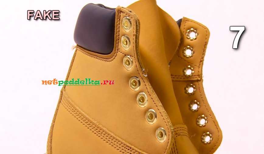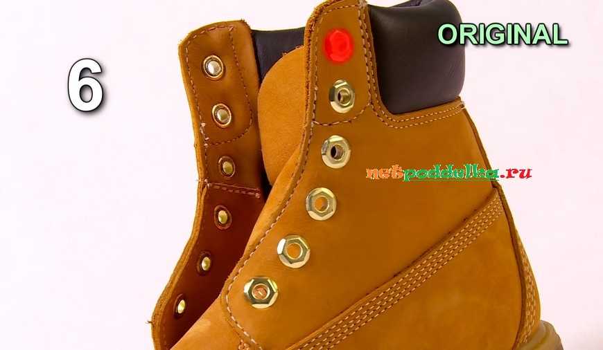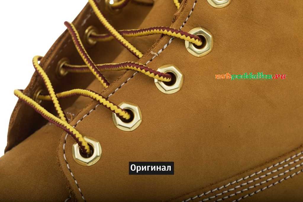 Определить подделку Тимберленд можно по количеству люверсов. Мужская обувь бренда имеет 7 отверстий с каждой стороны, а женские ‒ 6.