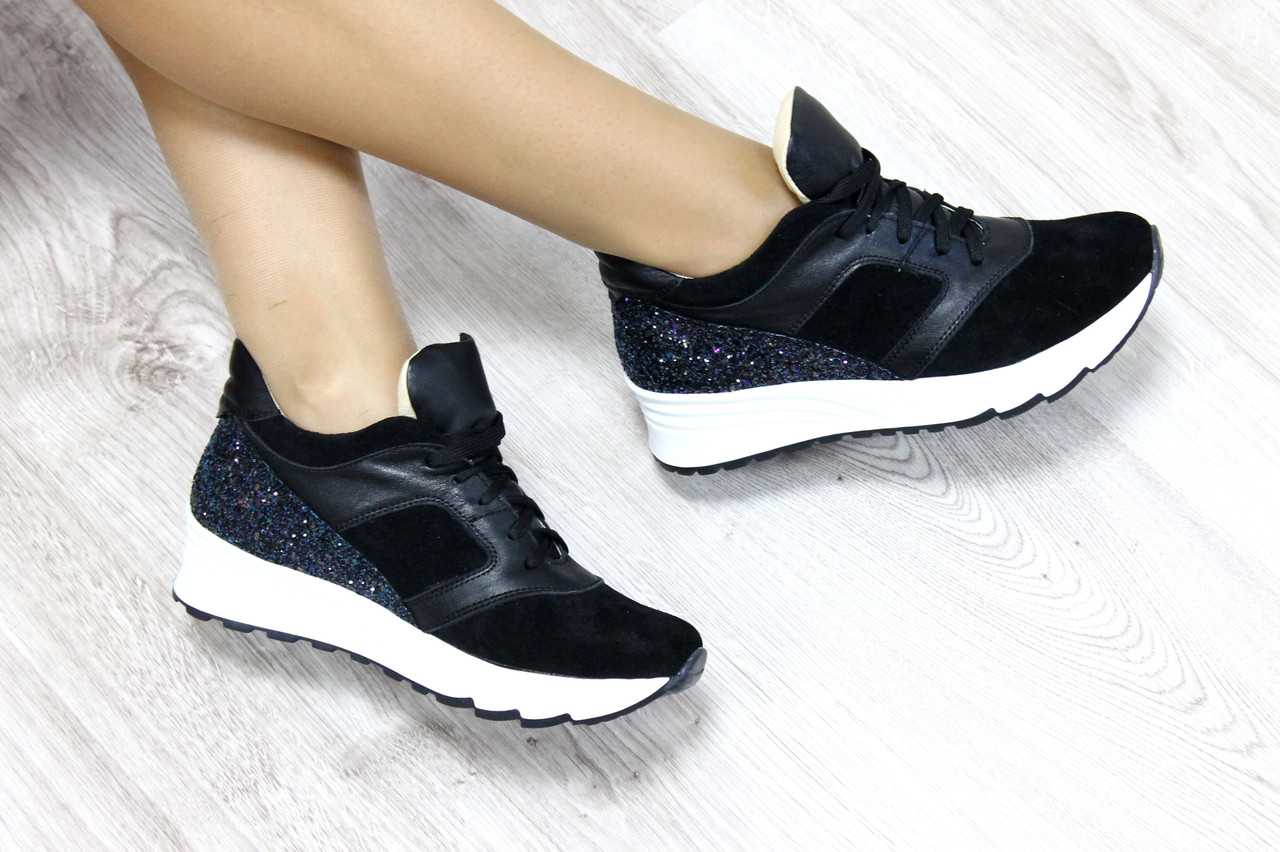 - Полностью черные. Универсальные изделия с верхом, подошвой, шнурками одного цвета, актуальное решение для мужчин и женщин. Обувь уместно выглядит в уютном кафе, на прогулке по парку или пикнике на берегу озера. Существуют различные вариации подобных моделей.
