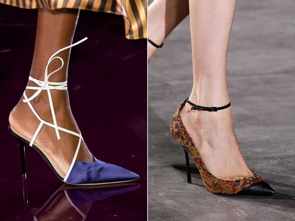 В 2019 году модными стали туфли с ремешком, тонким или широким, фигурным или же едва заметным. Его можно увидеть как на классических лодочках, так и на некоторых ботильонах.