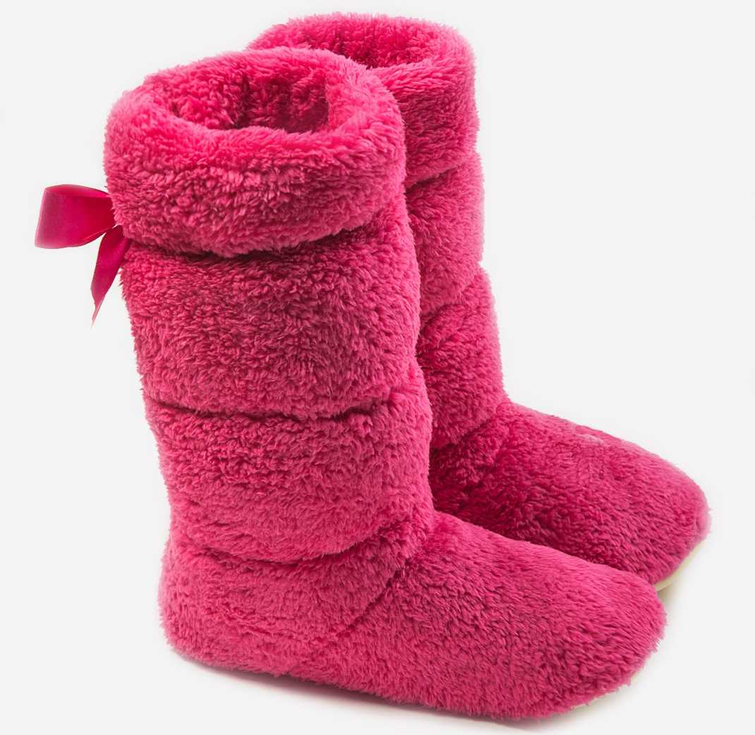 - С пушистыми элементами. В домашних тапочках, целиком меховых или с отделкой из данного материала, ходить по дому особенно приятно. Мягкие угги радуют нежной (розовой, сиреневой, карамельной) расцветкой, а украшают их забавные помпоны.