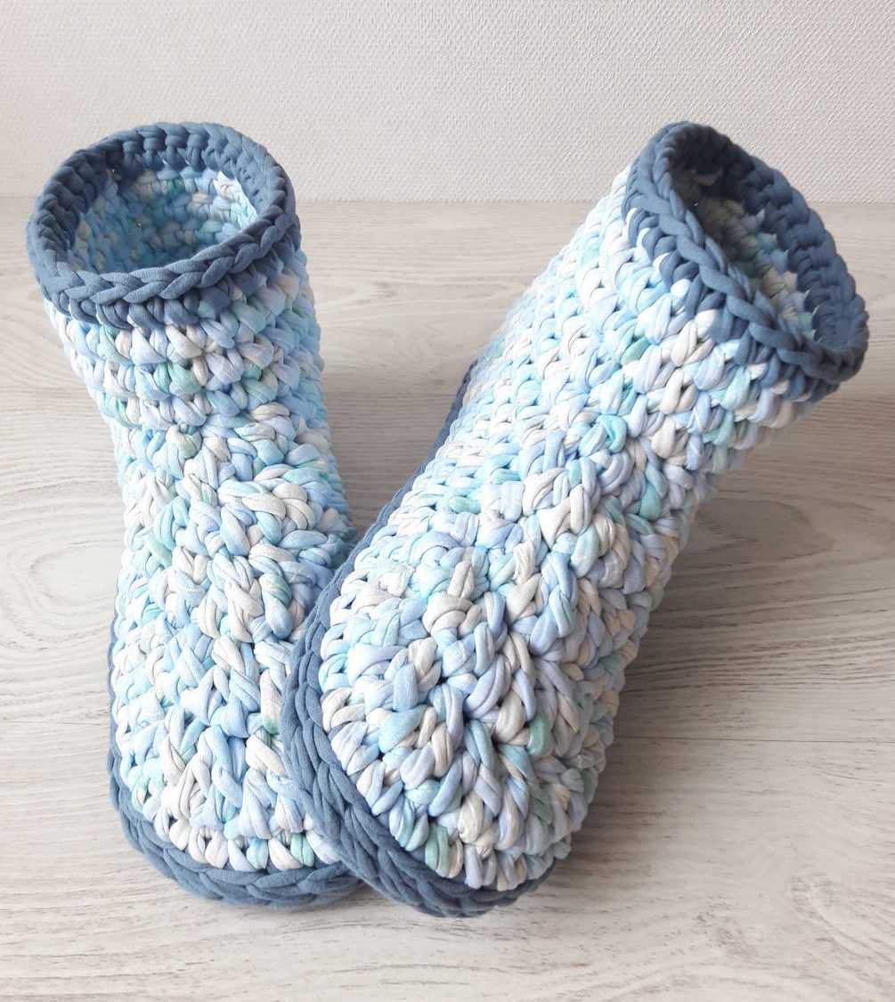 - Из пряжи. Встречаются вязаные угги промышленного и домашнего изготовления. Их снабжают ремнями и лентами для лучшей фиксации на ноге.