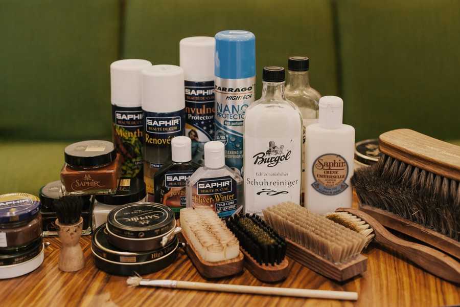 Для замшевой обуви необходимо приобрести специальную щетку, которая приподнимает ворсинки, счищает загрязнения. Такое приспособление компактно, поэтому его можно носить в сумочке. Также для замши можно приобрести красящий и водоотталкивающий спрей, которым необходимо обрабатывать носок и боковую часть несколько раз в неделю.
